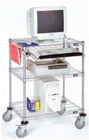 Nexel 3-Shelf Mobile Wire Computer LAN Workstation W/Keyboard Tray, 30"W X 24"D X 39"H, Chrome