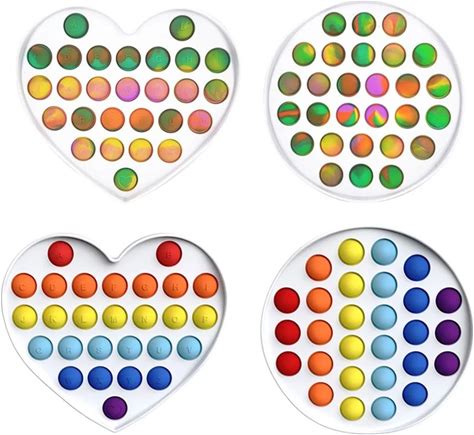 Multipurpose 4 Pack Rainbow Pop It Fidget Toy, Bubble Sensory Toy For Kids And Adults, Stress Reliever, 4 Shapes Poppers-Heart, Circle, Octagon,