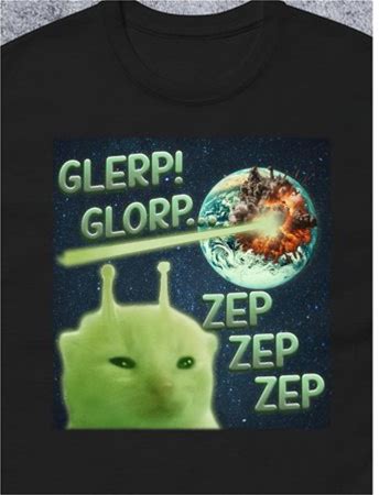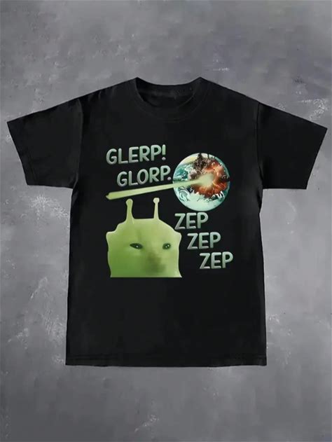 1Pc Y2K-Inspired Women's T-Shirt With Alien Cat Design - "GLERP! GLORP! ZEP ZEP ZEP" Text, Green Cat Character With Planets, Casual & Comfortable Round Neck Tee For All Seasons, Perfect Gift For Women And, Funny T Shirts,S
