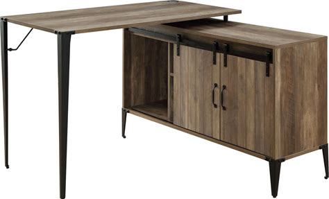 Kelli Oak L-Shape Desk | Industrial Desks MDF/Metal/Veneers By Bob's Discount Furniture