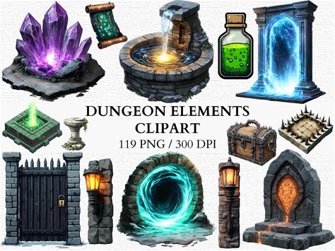 Dungeon Map Assets Clipart RPG Fantasy Tokens Dnd Trap Elements Magic Portals Digital Instant Download Commercial Use 119 PNG 300 DPI